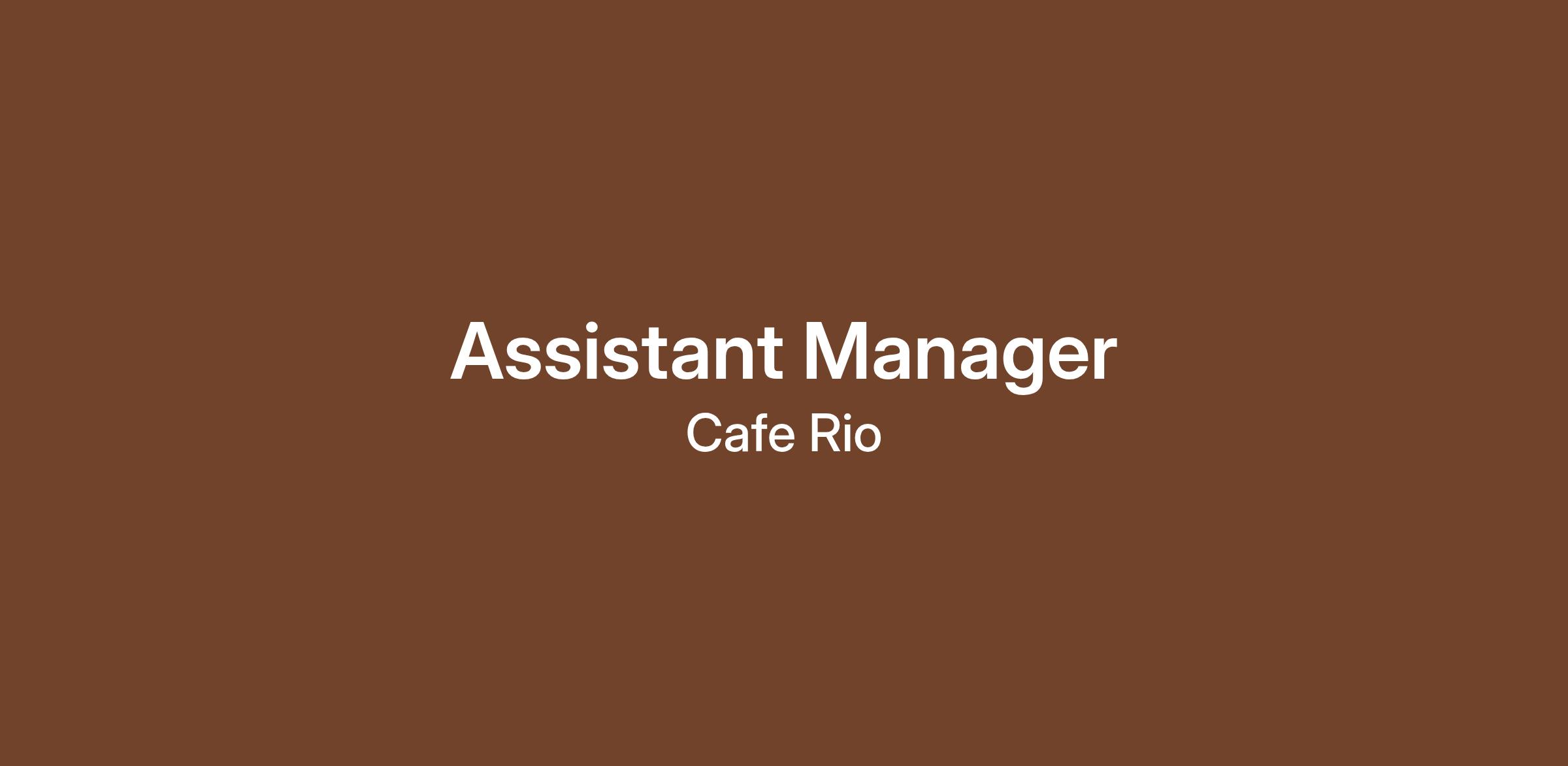 Cafe Rio Mexican Grill is serving up fresh opportunities! We are looking for high energy assistant managers. Do you have a passion for cooking up great food? Do you want to be apart of a team that's creating opportunities and changing the lives of everyone we serve?