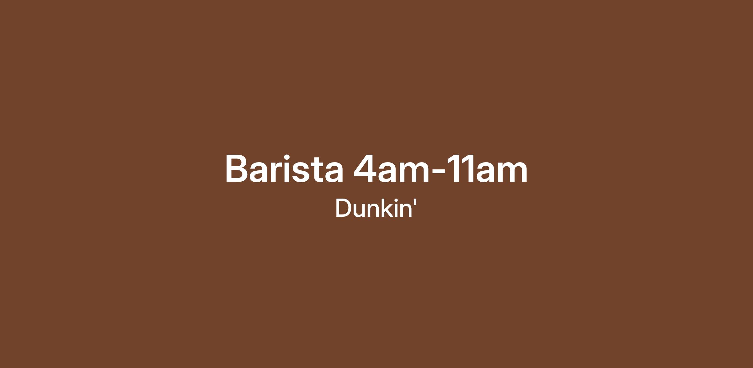 Whether you're squeezing in shifts between classes or school drop-offs, Dunkin’ has your back. Dunkin’ is the perfect place to earn money, gain experience, and have fun doing it. We’re all about good vibes, great coffee, and flexible hours that work around your life.